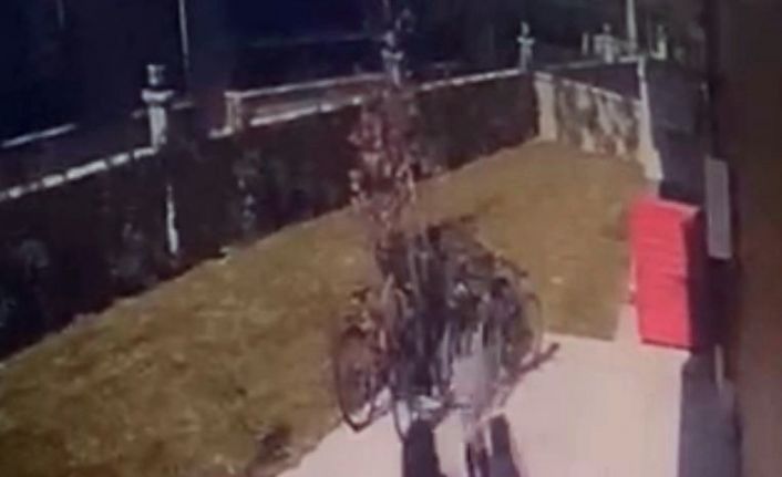 Güvenlik kamerasına yansıyan görüntülerde 4 kadının yüzlerini saklayarak binadan çıkmaya çalıştığı anlar yer aldı.