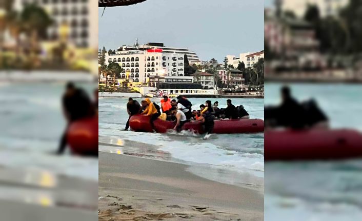 Yunanistan’a gitmek isteyen kaçak göçmen grubu rotayı şaşırınca sahildekilerin şaşkın bakışları arasında lastik bot ile geldikleri Kadınlar Denizi’nden plaja çıktılar. Kaçak göçmenler karaya çıktıktan sonra hızla bölgeden uzaklaştı.