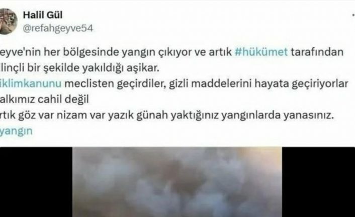 Sakarya’nın Geyve ilçesinde 20 Temmuz’da başlayan ve Bilecik’e sıçrayan orman yangını, 5’inci gününde de devam ediyor. Yangınlarla ilgili sosyal medya hesabından paylaşım yapan Geyve Belediyesi’nin Yeniden Refah Partili Meclis Üyesi Halil Gül, "Geyve’nin her bölgesinde yangın çıkıyor ve artık hükümet tarafından bilinçli bir şekilde yakıldığı aşikar. İklim kanununu Meclisten geçirdiler, gizli maddelerini hayata geçiriyorlar. Halkımız cahil değil artık, göz var nizam var. Yazık günah, yaktığınız yangınlarda yanasınız" ifadelerini kullandı.