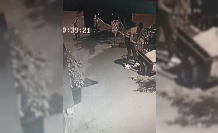 Iğdır’da bir işletmenin önündeki motosiklet römorkunu gözüne kestiren şahıs römorku başka bir motosikletin arkasına bağlayarak çaldı.