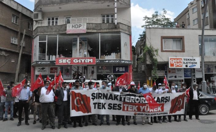 Şırnak’ta çeşitli sivil toplum kuruluşlarından oluşan Şehri Nuh Şırnak Platformu son dönemlerde PKK terör örgütü tarafından artan sivil katliamlarına tepki amaçlı yürüyüş düzenlendi. Şırnak Yeni Mahallede bir araya gelen vatandaşlar “Şırnak teröre karşı tek ses tek yürek” pankartıyla HDP binasının önüne kadar yürüdüler. Sık sık “Kahrolsun PKK ve işbirlikçi HDP sloganları atan grup, HDP binası önünde basın açıklamasında bulundu.