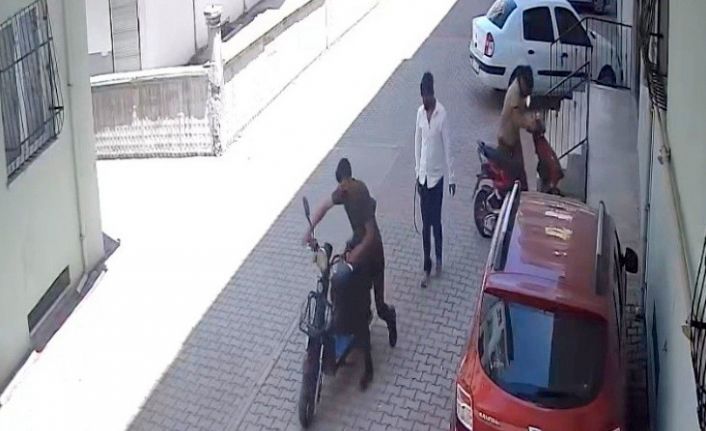 Osmaniye’de bir sitenin önüne park edilen iki elektrikli bisikletin güpegündüz çalınması pes dedirtti. Kameraya yansıyan hırsızlık olayında şahıslardan birisi yakalanırken, diğer ikisinin yakalanması için çalışmaların devam ettiği öğrenildi.