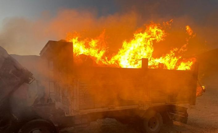 Van’ın Gürpınar ilçesinde ot yüklü kamyon alev alev yandı.