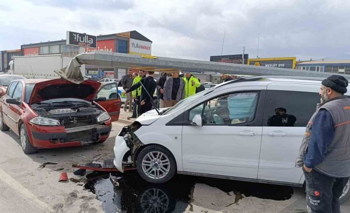 Bursa’nın İnegöl ilçesinde hafif ticari araç kırmızı ışıkta bekleyen otomobile çarpıştı. Kaza da ortalık savaş alanına döndü. Aydınlatma direğinin devrildiği kazada 1 kişi yaralandı.