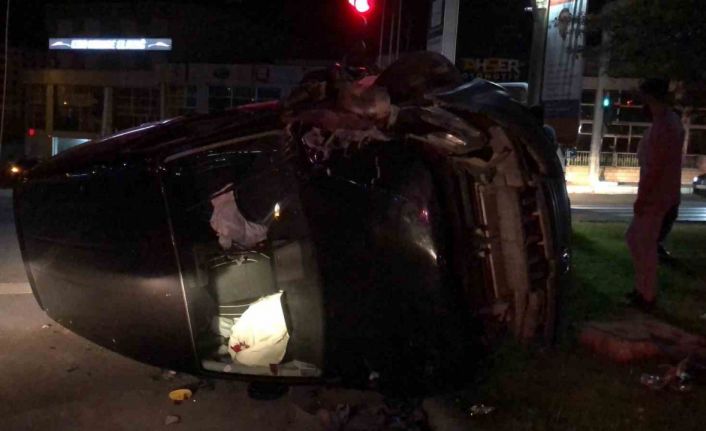 Hafif ticari araç yan yattı, emniyet kemeri hayat kurtardı
