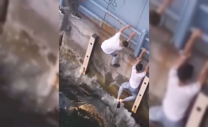 Olay, dün akşam saatlerinde Galata Köprüsü’nde meydana geldi. Yavru kedinin dalgalar arasında çırpındığını görenler, kediyi kurtarmak istedi. İki kişi, köprü üzerindeki demir korkuluklardan kendilerini sarkıttılar. Bir kişi denizdeki yavru kediyi ayaklarıyla sıkıştırarak denizden çıkardı. Diğer kişi ise eliyle kediyi alarak köprünün üzerine bıraktı. Yavru kedinin kurtarılma anları, bir vatandaşın cep telefonu kamerasına yansıdı.