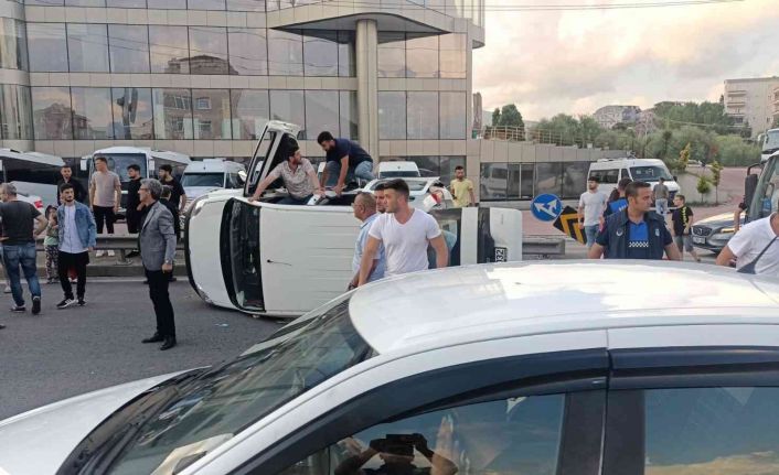 Kocaeli’nin Körfez ilçesinde hangi yöne gitmek için tabelalara bakan sürücünün kontrolünü kaybettiği hafif ticari araç takla attı. Yan yatan aracın içinde sıkışan sürücüyü vatandaşlar ve itfaiye kurtardı.