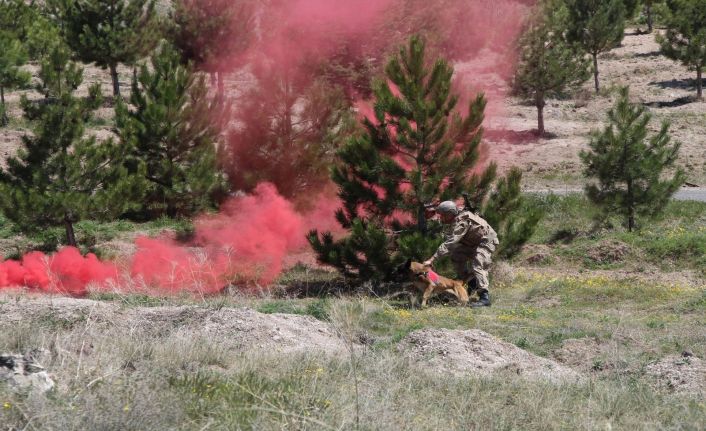 JAKEM Komutanlığında tarafından düzenlenen tatbikatta terör örgütü üyesi tarafından tren yoluna koyulan bomba, eğitimli köpek tarafından tespit edilmesinin ardından jandarma ekipleri tarafından imha edildi. İz takip köpekleri tarafından da terör örgütü üyesi saklandığı mağarada bulunarak etkisiz hale getirilirken erzak arama köpeği tarafından da terör örgütü tarafından saklanan erzaklar ele geçirilerek imha edildi. Gerçeği aratmayan tatbikat nefesleri keserken Köpek Eğitim Merkezi Bölük Komutanı Üsteğmen Aydın Tekin, “Mayın arama köpekleri özellikle terör olayları kapsamında arazilerde, patikalarda, asfalt veya stabilize yollar ile demiryollarında, ormanlık alan ve dere yataklarında, köprü ve menfezlerde, mevzilerde, mağara ve sığınaklarda toprak seviyesinden 30 cm derinliğe kadar saklanan veya terör örgütü mensuplarınca yerleştirilerek tuzaklanan anti personel ve anti tank mayınları başta olmak üzere her türlü EYP, silah ve mühimmatın yerini tespit edebilmektedir” dedi.