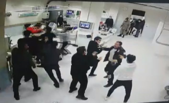 Saldırı anı ise hastanenin güvenlik kamerasına saniye saniye yansıdı. Görüntülerde hasta yakınlarının sağlık ve güvenlik çalışanlarına darp ettiği görüldü.