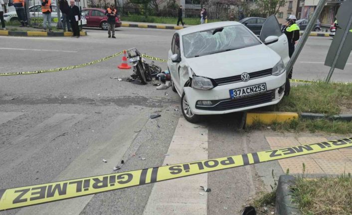 Edinilen bilgiye göre, Çaydüzü Mahallesi Kazım Karabekir Caddesi Hastane kavşağında Ulus’tan Bartın istikametine seyir eden Y.D.G (16) idaresindeki 74 ABF 706 plakalı motosiklet, hastane istikametinden çıkan Yakup Marıl (68) idaresindeki 37 ACN 253 plakalı otomobil ile çarpıştı. Feci kazada otomobil sürücüsü ile motosiklet sürücüsü ve arkasında bulunan Ç.B., ağır yaralandı. Kazanın ardından yaralılar ambulanslarla hastaneye kaldırılırken, yaralıların ayakkabıları ise çarpışmanın etkisiyle olay yerine savruldu. Trafik levhalarının da hasar gördüğü kazada yaralanan motosiklet sürücüsü Y.D.G. ve yanındaki Ç.B.’nin oto saniyide çalıştığı ve işe yetişmek için süratli gittikleri ileri sürüldü.