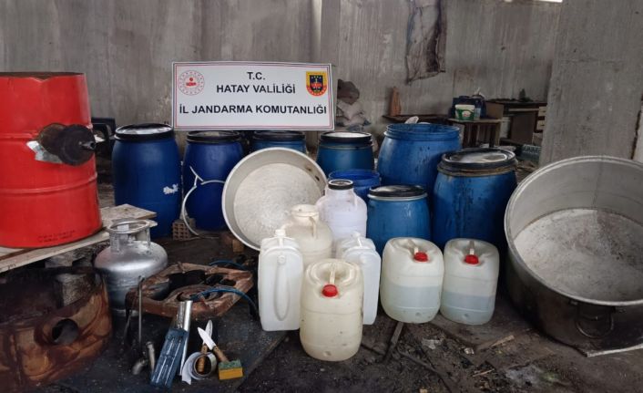 Hatay’da jandarma ekipleri tarafından bir işyerine yapılan baskında 1 ton sahte alkol ele geçirildi.