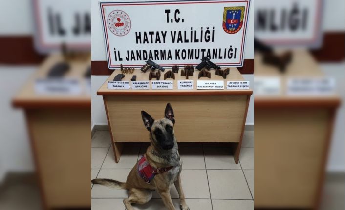 Antakya İlçe Jandarma Komutanlığı tarafından jandarma dedektifleri (JASAT) ve Rodi isimli narkotik arama köpeği ile birlikte şüpheliye ait evde yapılan aramada 1 adet Ak-47 Kalaşnikof marka silaha ait şarjör, 210 adet 7.62 mm fişek, 1 adet ruhsatsız CZ 75 marka 9 mm çapında tabanca, tabancaya ait 2 adet şarjör ve 29 adet tabanca fişeği, 1 adet Blow F92 marka 9 mm faturasız kuru sıkı tabanca ve tabancaya ait 1 adet şarjör ele geçirildi.