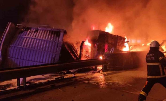 Hatay’da kontrolden çıkan tır gişelere çarptı. Kaza sonrası patlama ile birlikte yangın çıkan araçtaki 2 kişi yaralandı.