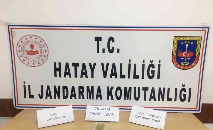 Hatay’ın merkezi ilçesi Antakya ve Yayladağı ilçelerinde 78 gram takoz esrar, 4 adet Captagon hap, 1 adet ruhsatsız av tüfeği, 1 adet kuru sıkı tabanca, 2 bin adet bandrolsüz makaron ve 2 adet uyuşturucu içme aparatı ele geçirildi.