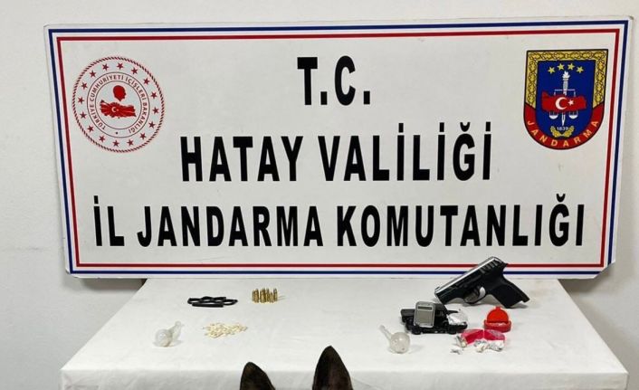 Hassa İlçe Jandarma Komutanlığı dedektifleri JASAT ile Kırıkhan İlçe Jandarma Komutanlığı ekipleri ve KOM Şube Müdürlüğünün uyuşturucu madde arama köpeği "Volta" ve "Kobra" ile birlikte yapılan operasyon sonucunda Kırıkhan ilçe merkezinde ikamet eden A.Y. ile M.Y. isimli şahısların evinde yapılan aramada 1 adet ruhsatsız tabanca ve şarjör, 12 adet fişek, 1 adet muşta, 1 adet hassas terazi, 70 adet Captagon hap, 5 gram metamfetamin ve 1 gram kubar esrar maddesi ile Akbez Mahallesinde icra edilen yol kontrol noktasında yakalanan N.Y. isimli şahsa ait eşya içerisinde, bin 340 paket kaçak sigara ile 21 adet 100 cl’lik kaçak viski ele geçirildi.