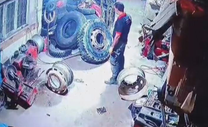 Öte yandan, Hüseyin Ketme’nin kamyon lastiğine kompresörle hava bastığı ve lastiğin şiddetli şekilde patladığı anlar güvenlik kamerasına yansıdı.