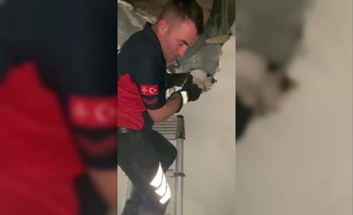 Havalandırma boşluğuna düştü, duvar kırılarak kurtarıldı