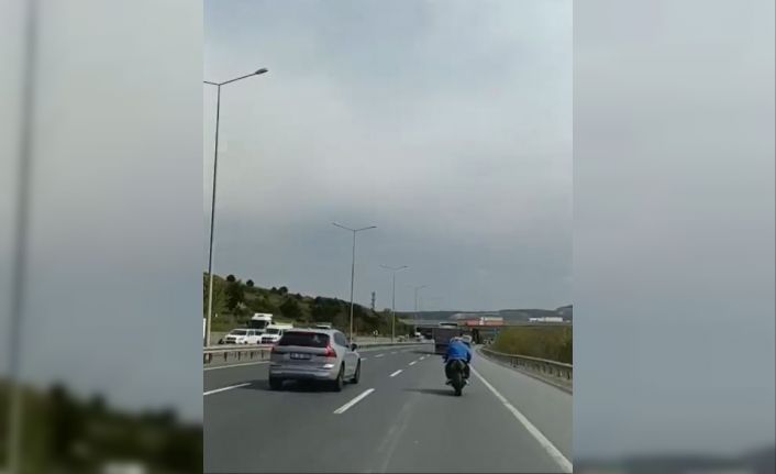 İstanbul Havalimanı-Kemerburgaz yolu üzerinde geçtiğimiz günlerde plakasını söken bir motosiklet sürücüsü, otobanda dakikalarca tehlikeli bir sürüş gerçekleştirdi. Motosiklet sürücüsünün makas attığı, ön tekeri kaldırdığı ve emniyet şeridini işgal ettiği anları, bir vatandaş cep telefonu kamerasıyla kaydetti. Akan trafikte hem kendi canını hem de diğer araç sürücülerinin hayatını tehlikeye atan sürücü, yüreklere ağza getirdi.