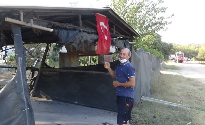 Balıkesir’in Ayvalık ilçesine kontrol altına alınan orman yangınında 40 hektarlık çam ormanı zarar gördü. Badavut mevkiinde bir marangoz atölyesinin deposu ve bahçesinde bulunan kümes hayvanları da yanarken, garajın üzerinde asılı olan Türk bayrağı ise sapasağlam kaldı.