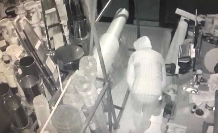 Öte yandan hırsızlık anı güvenlik kameralarına yansıdı. Görüntülerde, şüphelilerin dükkana gelişi, iş yerinden malzemeleri çalmaları ve çaldıkları malzemeleri el arabalarıyla taşımaları yer alıyor.