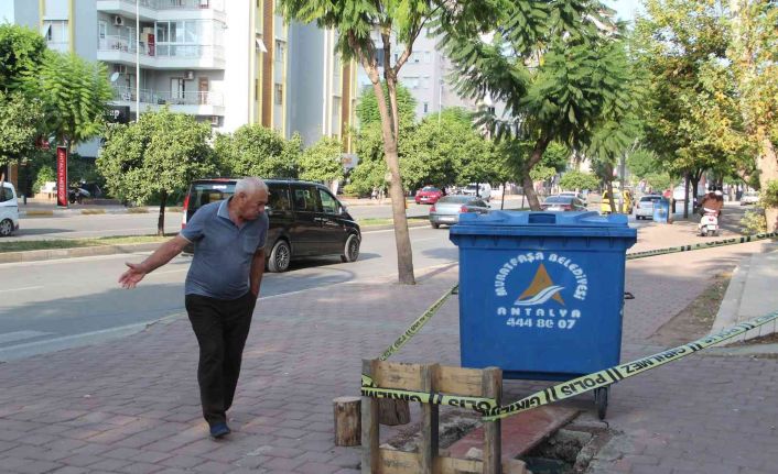 Antalya’da kaldırım üzerinde bulunan rögar kapağı kişi ya da kişilerce çalındı. Rögar kapağının çalınması ile vatandaşların hayatı tehlikeye girerken, durumun farkına varan vatandaşlar rögar kapağına çöp konteynırı ve tahta ile önlem alındı.