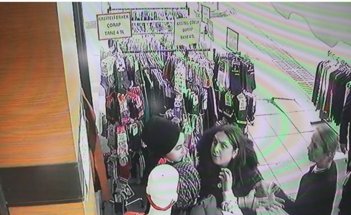 Görüntülerde, mağazanın önündeki askıda sergilenen ürünlere bakan kadının, beğendiği bir eşofman altını çantasına koyduğu, daha sonra mağazaya girerek etrafa bakıp yeniden dışarı çıktığı, daha sonra beğendiği bir eşofman altını daha çantasına alıp uzaklaştığı görülüyor.