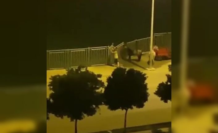 Adana’da atla gelen şüphelilerin DSİ’ye ait sulama kanalının korkulukları çalarak başka bir araca yüklendiği anlar cep telefonuyla anbean görüntülendi.