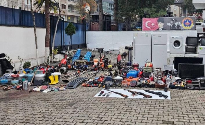 Trabzon’un Maçka ilçesinde hırsızlık şüphesi üzerine yapılan baskında ele geçirilenler İlçe Jandarma Komutanlığı’nın bahçesini doldurdu. Evlerden çıkan 100’ün üzerindeki çalıntı malzeme arasında tüfekten fotokapana, beyaz eşyadan ayı savara çok sayıda eşya dikkat çekerken, olayla ilgili 3 kişi gözaltına alındı.