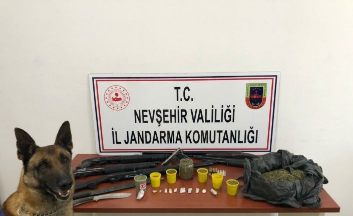 Edinilen bilgilere göre, Ürgüp ilçesine bağlı Mustafaşa köyünde iki farklı inşaatta çeşitli tarihlerde meydana gelen hırsızlık olayı ile ilgili Ürgüp İlçe Jandarma Komutanlığı ekipleri tarafından yapılan çalışmalar sonrasında hırsızlık şüphelisi M.Ç.M., R.M. ve R.Ç.M. yakalanarak gözaltına alındı. Jandarmadaki ifadelerinde çaldıkları malzemeleri O.G.’ye para ve uyuşturucu madde karşılığında sattıklarını söyleyen hırsızlık şüphelilerinin ifadelerinin ardından jandarma ekipleri tarafından O.G. ve T.G.’nin beraber kullandıkları besi çiftliğinde arama yaptı. Besi çiftliğinde yapılan aramada 1kilogram 269 gram kubar esrar, 11 gram metamfetamin, 6 gram bonzai, 6 gram toz esrar, 2 adet hap, 1 adet hassas terazi, 1 adet tabanca, 5 adet av tüfeği, 2 adet pala, 52 adet hırsızlık malzemeleri ele geçirildi.