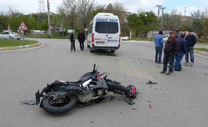 Aksaray’da kadın sürücünün kullandığı hız motosikletinin minibüse çarpması sonucu meydana gelen trafik kazasında, motosikletin sürücüsü ağır yaralandı.