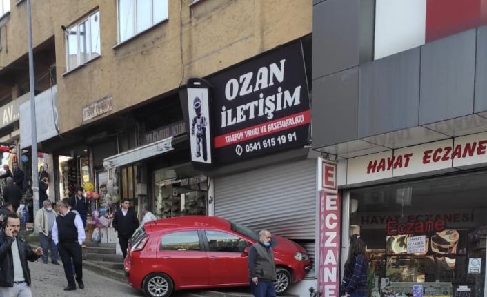 Zonguldak’ın Çaycuma ilçesinde sürücüsünün yokuş aşağı giderken kontrolünü kaybettiği otomobil iş yerine girdi.
