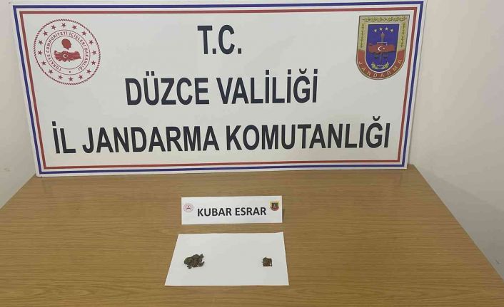 İl Jandarma Komutanlığı ve Akçakoca İlçe jandarma Komutanlığı ekipleri ilçeye bağlı Melenağzı köy yolunda narkotik köpeği destekli yol kontrol uygulaması yaptı. Uygulama çerçevesinde Hollanda plakalı otomobili durduran ekipler, sürücü ve içindeki bir kişinin şüpheli hareketleri sonrasında şahısların üzerinde ve otomobilde arama yaptı. Arama sonucunda V.E. ve F.E. isimli şahısların üzerinden kubar esrar maddesi ele geçirildi. Şahıslar ifadeleri alınmak üzere gözaltına alınarak Akçakoca İlçe Jandarma Komutanlığına götürüldü.