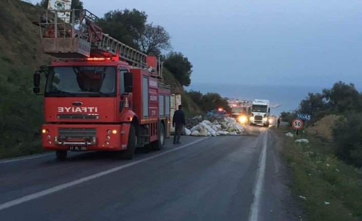 Çanakkale-İzmir karayolunun Ayvacık ilçesi yakınlarında hurda yüklü kamyonun devrilmesi sonucu 1 kişi yaralandı.