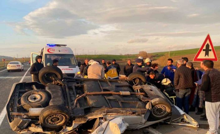 Tekirdağ Çorlu’da takla atması sonucu hurdaya dönen otomobilin sürücüsü kazadan yaralı kurtuldu.