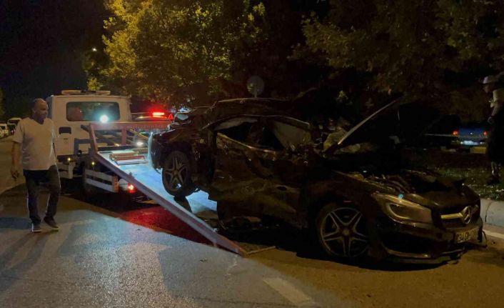 Eskişehir’de park halindeki kamyona çarptıktan sonra orta refüje çıkarak durabilen lüks araçta bulunan 5 kişi yaralandı.