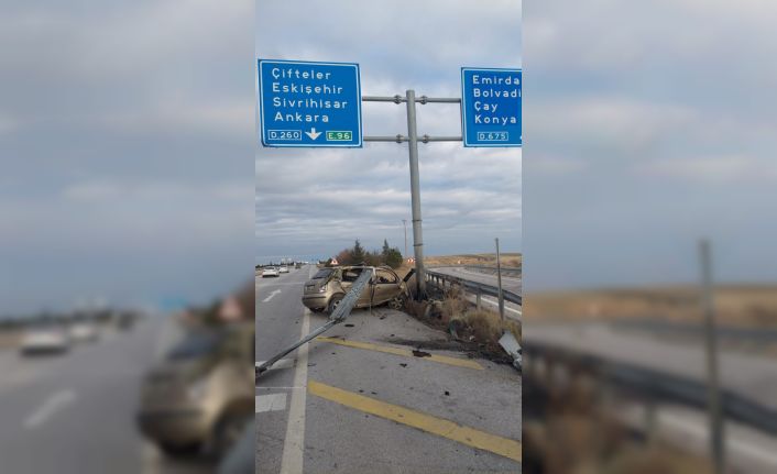 Afyonkarahisar’da önce bariyerlere ardından beton direğe çarpan otomobilin hurdaya döndüğü kazada sürücü yaralandı.