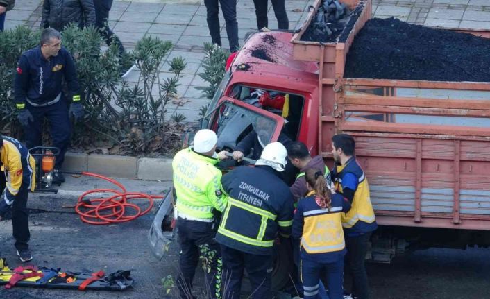 Zonguldak’ta kömür yüklü kamyonet, önünde seyreden kamyonete çarptı. Üç aracın karıştığı kazada hurdaya dönen kamyonette sıkışan iki kişi ekiplerin yardımıyla kurtarılarak hastaneye kaldırıldı.