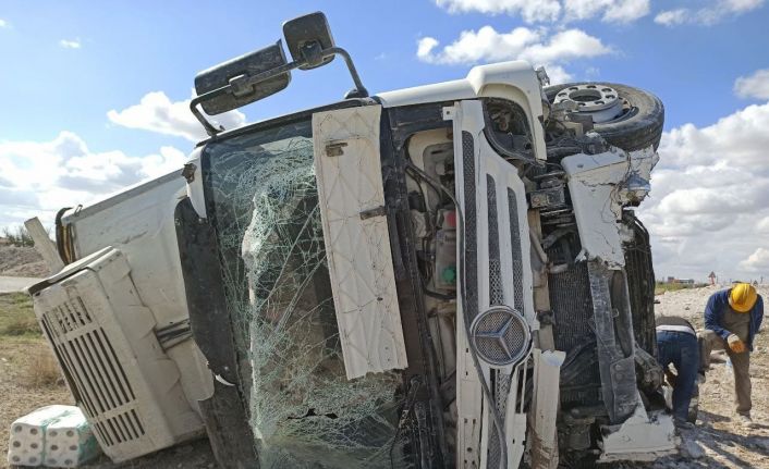 Aksaray’da sürücüsünün direksiyon hakimiyetini kaybettiği tırın şarampole devrilmesi sonucu meydana gelen trafik kazasında, tır sürücüsü hurdaya dönen aracından burnu dahi kanamadan kurtuldu.