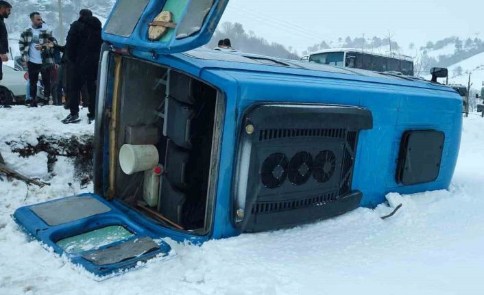 İçerisinde öğretmenlerin de bulunduğu servis minibüsü devrildi: 2 yaralı