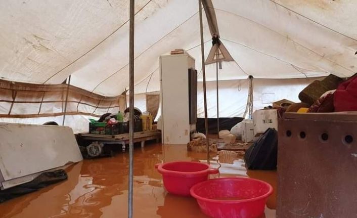 Suriye’de meydana gelem şiddetli yağışlar nedeni ile İdlib kırsalında bulunan kamplar sular altında kaldı.