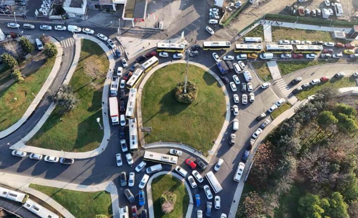 İstanbul’da İETT otobüsünde yaşanan arıza nedeniyle yolu araç trafiğine kısmen kapattı. Oluşan araç trafiği havadan çekilen görüntülere yansıdı. Bu sırada küçük boyuttaki araçlar zorlukla kalan otobüsün yanından geçerken geçemeyen otobüsler trafiği kilitledi. Otobüs daha sonra körüğü yamuk olmasına rağmen güçlükle ileriye sürüldü. Yaklaşık 1, 1-5 saat trafikte bekleyen vatandaşlar işlerine geç kaldılar. Kuyumcukent okak ve 29 Ekim Caddesinde araçlar yaşanan arıza nedeniyle yaklaşık 1 saat ilerleyemedi.