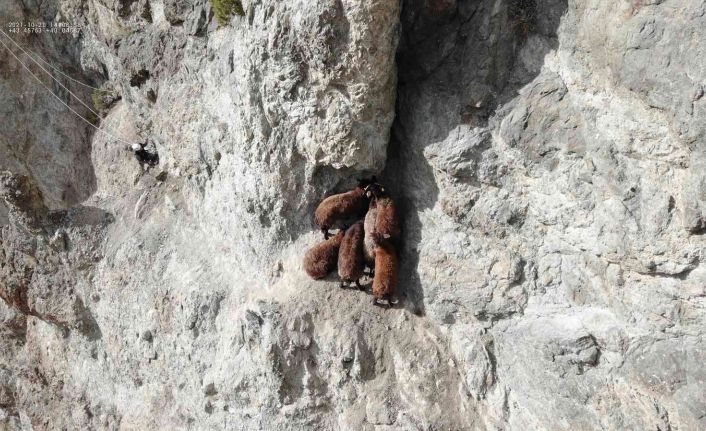 Iğdır’ın Tuzluca ilçesinde kayalıklarda mahsur kalan 8 koyun, İl Afet ve Acil Durum Müdürlüğü (AFAD) ekiplerince drone yardımıyla bulunarak kurtarıldı.