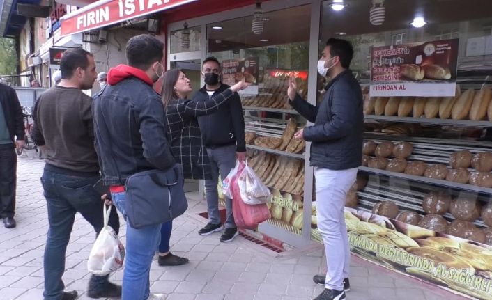 Iğdır’da pide kuyruğunda maskesini takmadan sıra bekleyen kadın ile kendisini uyaran bir kişi arasında tartışma çıktı.