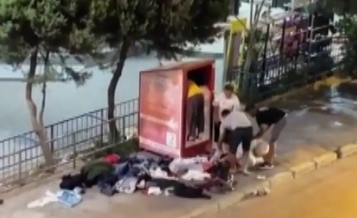 Öte yandan o anlar bir vatandaş tarafından cep telefonu kamerası ile kayda alındı. Görüntülerde park halindeki otomobil ve kutunun çevresinde duran 5 kişinin kıyafetleri kutunun içerisinden alması ve seçtiği anlar yer aldı.