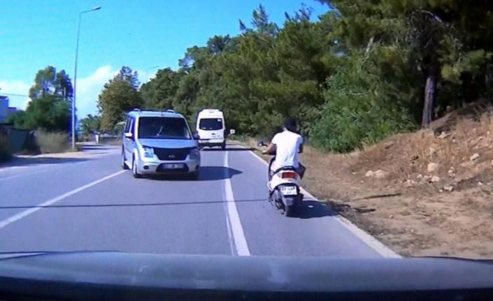 Antalya’nın Manavgat ilçesinde 2 aracın kafa kafaya çarpışması sonucu meydana gelen trafik kazasında 1’i Rus uyruklu 2 kişi yaralandı. Kaza anının birkaç saniye öncesinde aracın üzerine doğru geldiği görüntüler diğer aracın kamerası tarafından kaydedildi. O anda iki aracın arasından geçmekte olan motosiklet sürücüsü ise kazadan saniyeler farkıyla kurtuldu.