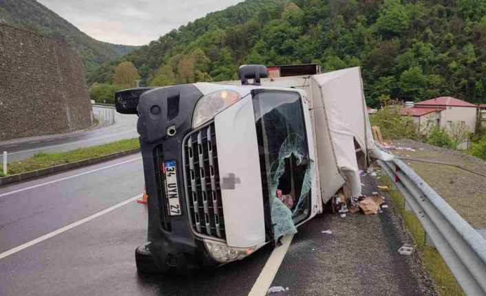 Zonguldak-Ereğli yolu üzerinde sürücüsünün kontrolünden çıkan ilaç kamyonu yan yattı. Kazada 1 kişi yaralandı.