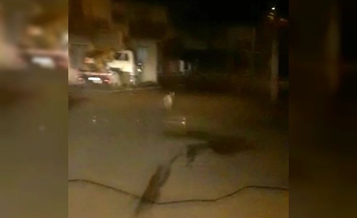 Adıyaman’ın Gölbaşı ilçe merkezine kadar inen kurtları gören vatandaşlar araçla kovaladı.
