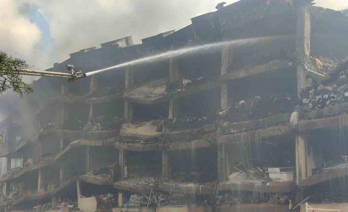 Çevre ilçelerden yangın yerine itfaiyeden bir çok takım sevk edildi. 3’üncü gününde kontrol altına alınan yangının soğutma çalışmaları devam ediyor. Binanın bazı bölgelerinde çökme meydana gelirken iç kısımlarında ise küçük yanmaların devam ettiği görüldü. Soğutma çalışması ve iş hanın son hali havadan görüntülendi.