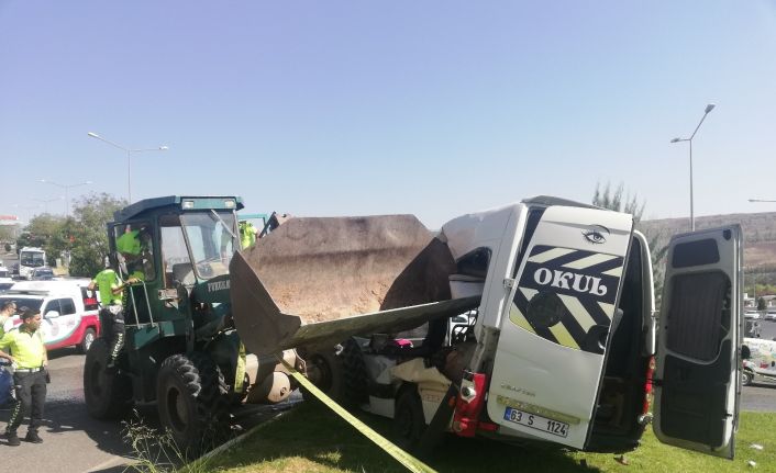 Şanlıurfa’da freni boşalan kepçe, ilkokul öğrencilerini taşıyan servis minibüsüne çarptı. Kazada 11 öğrenci ile 2 sürücü yaralandı. Hastaneye kaldırılan çocuklardan 2’sinin durumunun ağır olduğu öğrenildi.