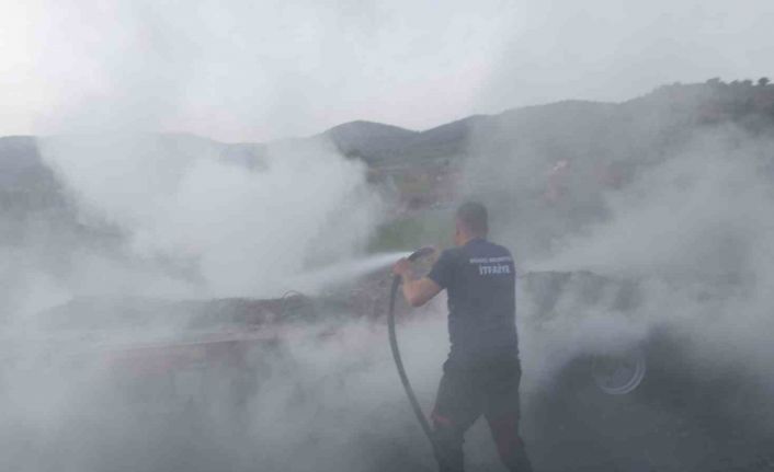 Osmaniye’de otoyolda deprem bölgesine iş makinesi taşıyan tır seyir halindeyken bir anda yanmaya başladı. Arkadaki iş makinasının operatörü aracı hemen römorktan indirirken itfaiye yangını söndürdü.